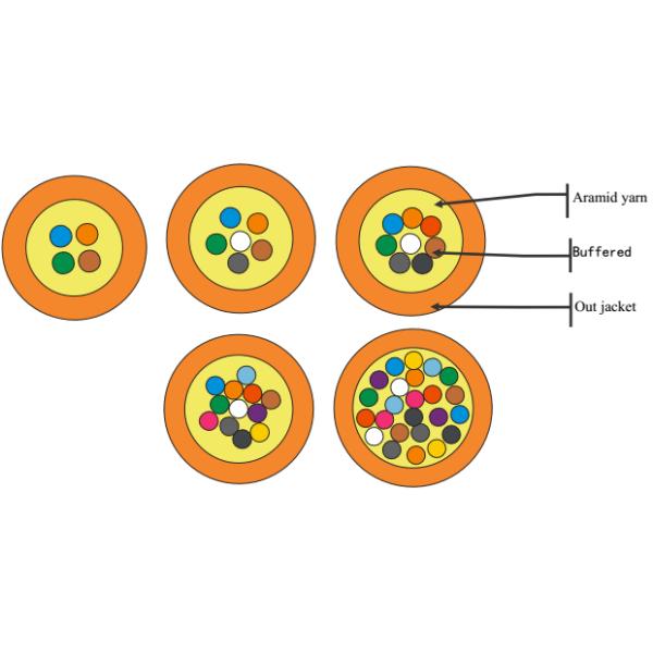 The tight buffer fiber wrapped with a layer of aramid yarn as strength member ,then completed with a layer of PVC or LSZH material as out jacket.